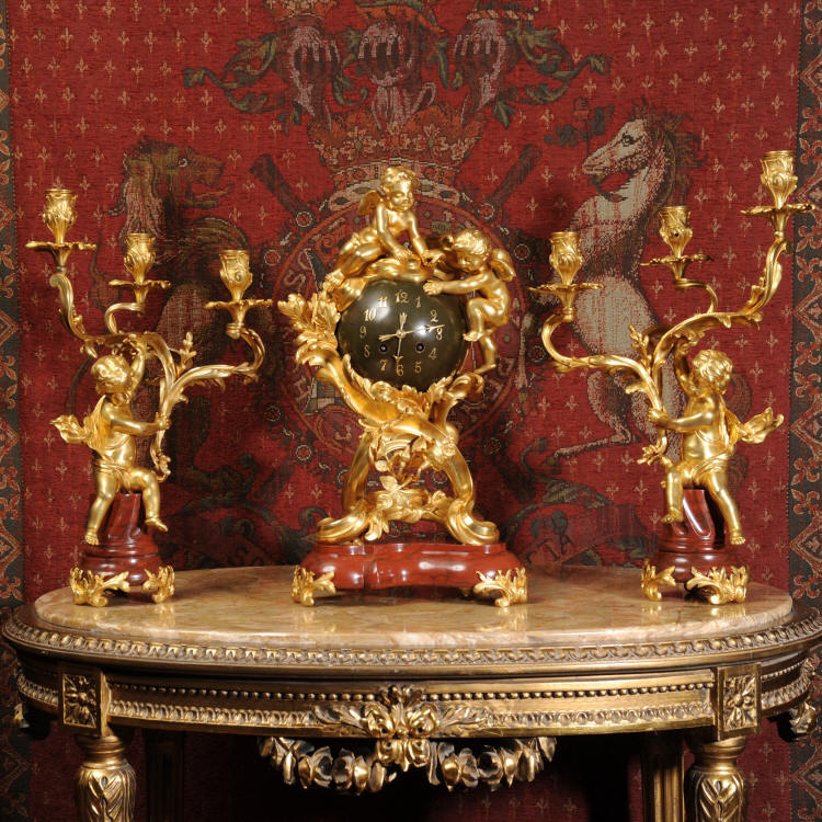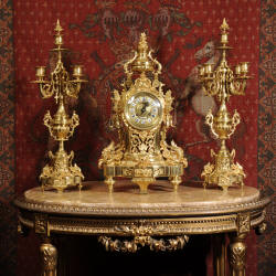 Large Louis XVI Clock Set by Vincenti~ French - Circa 1870 ~ ~~ Excellent condition, fully overhauled ~~ A large and superb original antique French clock set, beautifully modelled in gilt bronze in the style of Louis XVI. It is profusely decorated with acanthus, scrolls to the sides, an urn of flowers to the top and a fretted front panel of acanthus, allowing the pendulum to be seen gently swinging within. Height 23" or 58.5 cm. ......Click here for full details! |