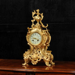 Antique French Gilt Bronze Rococo Clock by Samuel Marti~ French - Circa 1880 ~ ~~ Excellent condition, fully overhauled ~~ A stunning original antique French Rococo clock. It is beautifully modelled in gilded bronze, of waisted shape, profusely decorated with 'C' scrolls, acanthus leaves and trailing foliage. To the top is an elaborate urn with flame finial. The front is fretted to allow a glimpse of the pendulum gently swinging within. ......Click here for full details! |