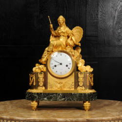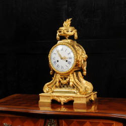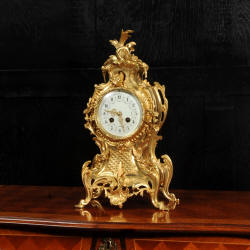 Antique French Gilt Bronze Rococo Clock ~ Dolphin~ French - Circa 1870 ~ ~~ Excellent condition, fully overhauled ~~ A stunning original antique French Rococo clock featuring a dolphin to the top of the case. It is of the most beautiful Rococo style, asymmetric waisted case decorated with 'C' scrolls, acanthus leaves and floral swags. The dolphin dives through a niche to the top of the case with a gilt bronze splash in his wake, a most unusual and attractive feature. ......Click here for full details! |