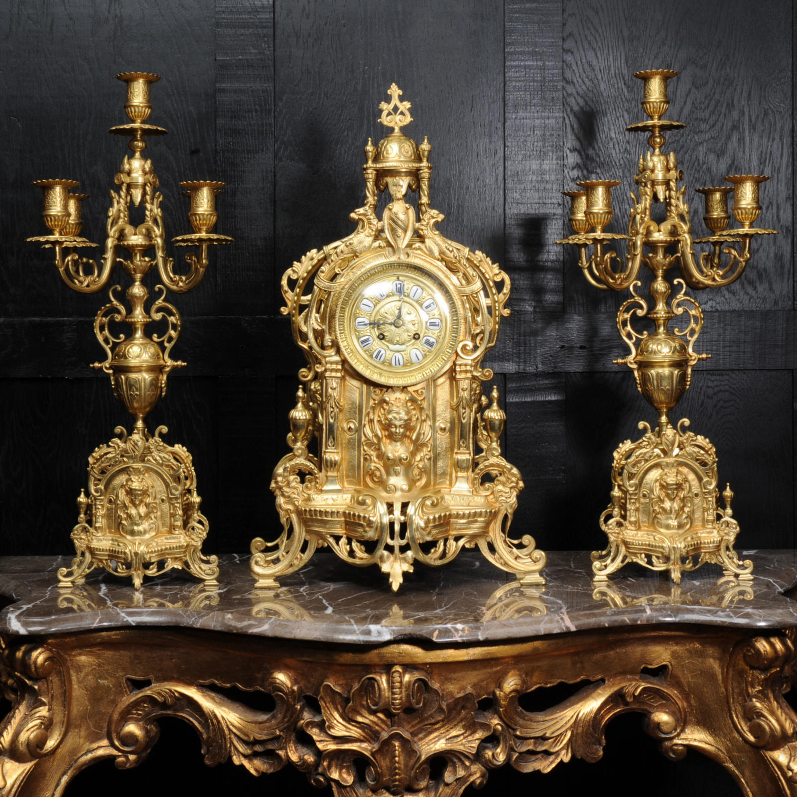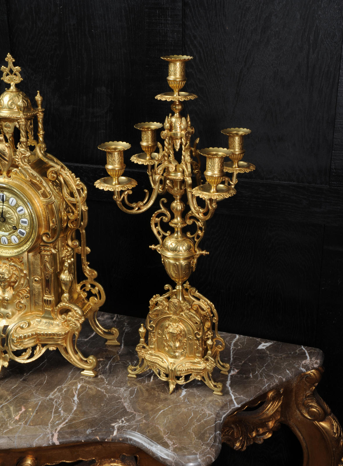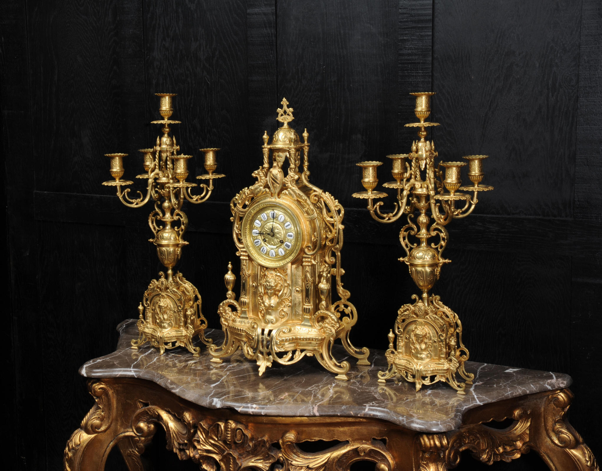 condition with no damage. Candelabra are slightly distorted. The set makes a stunning