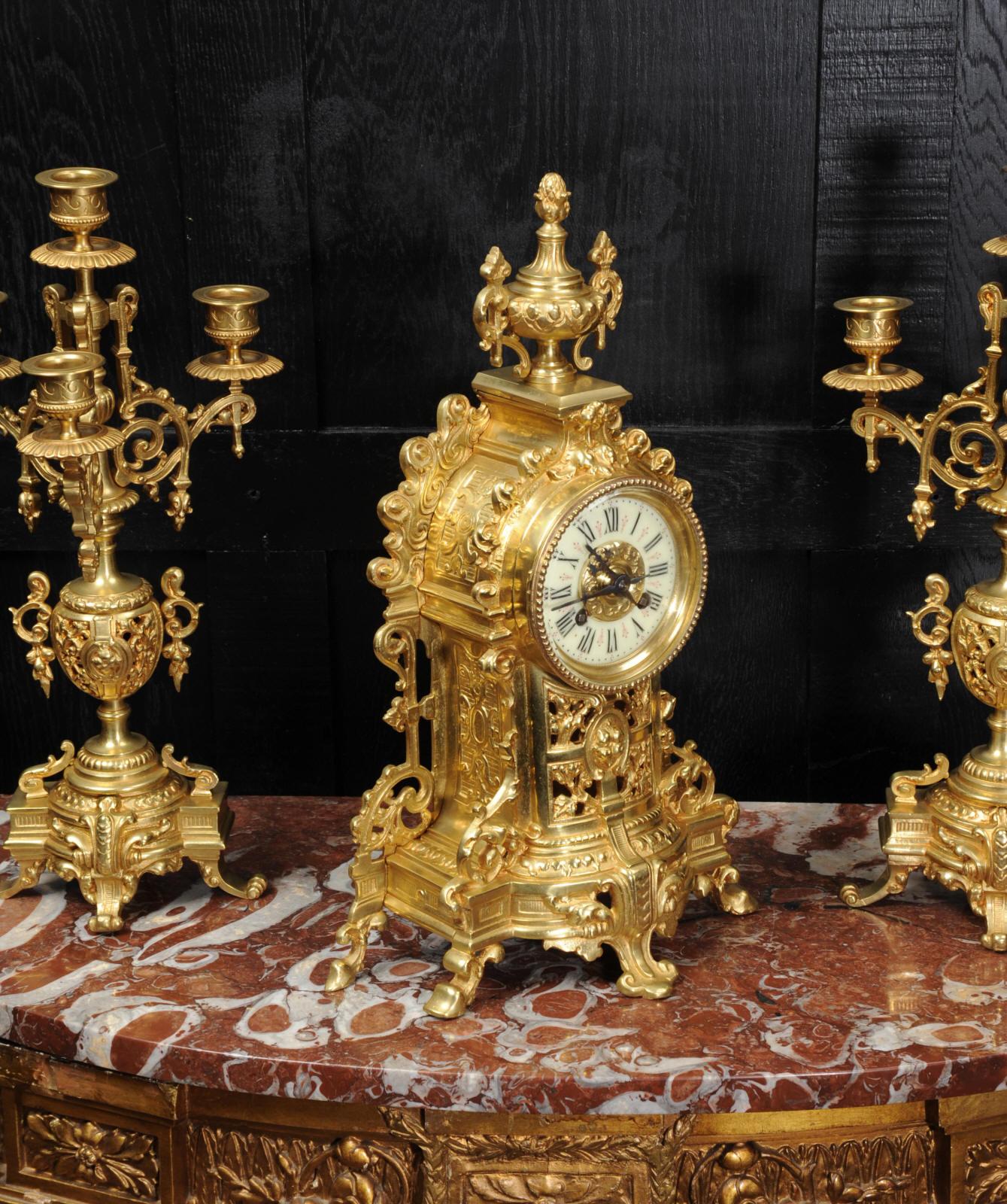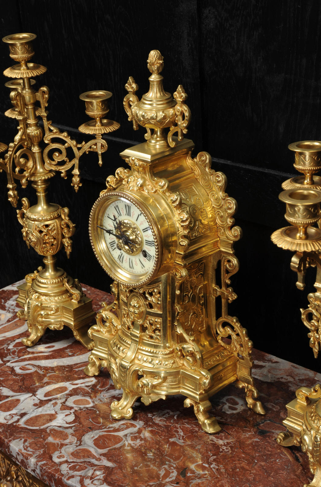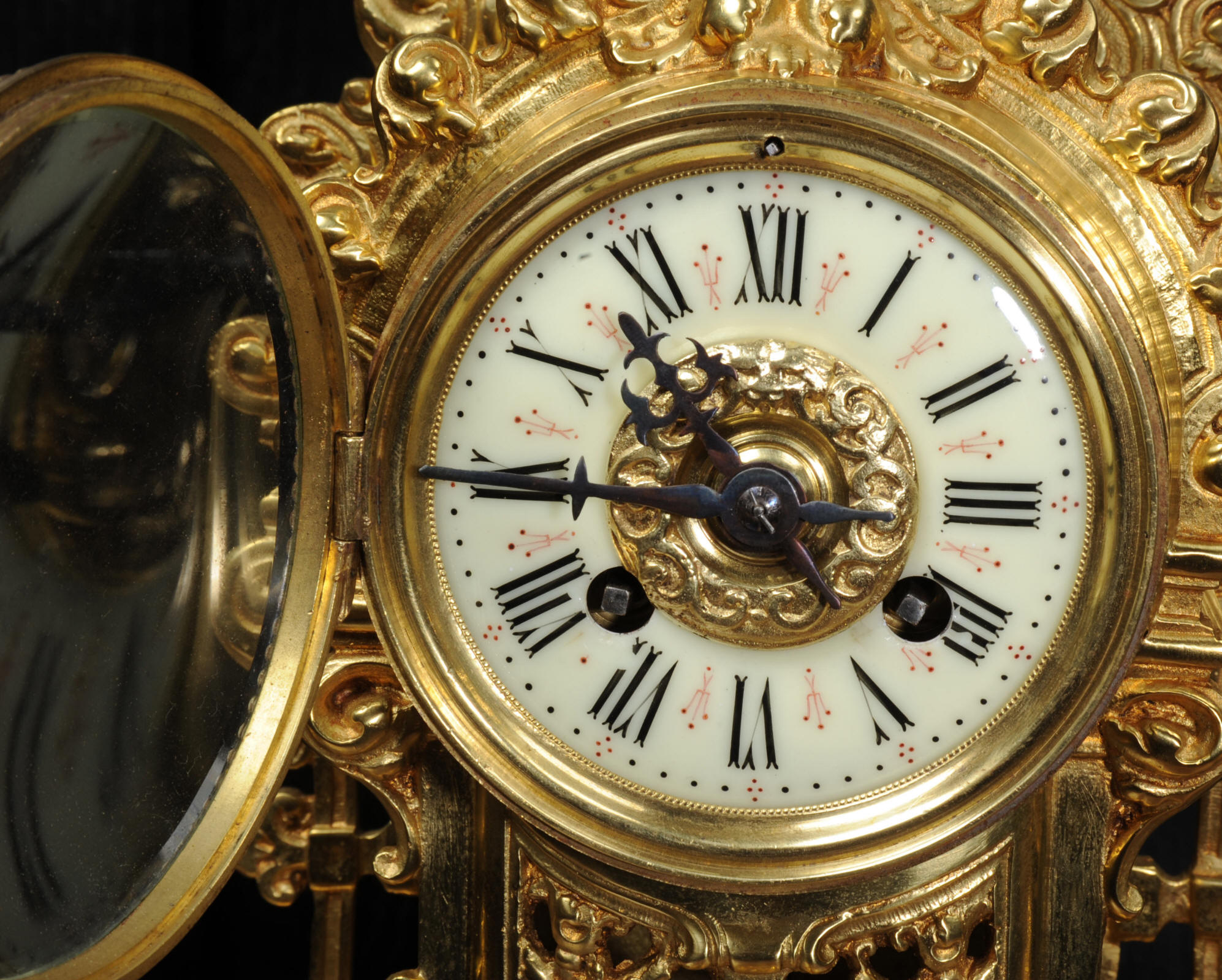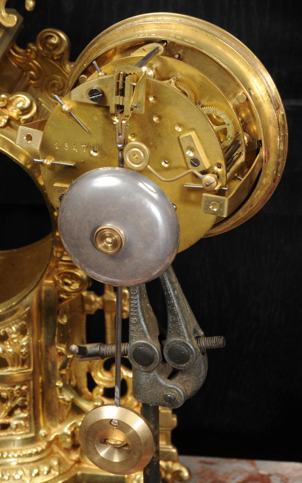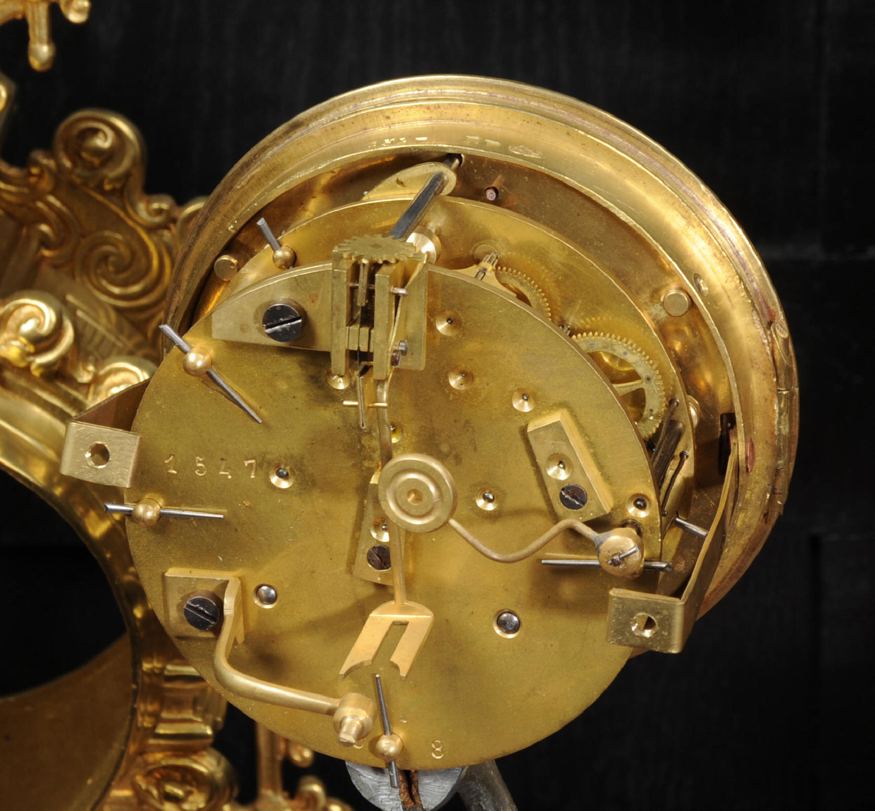 The dial is porcelain enamel on copper with a gilt bronze centre and blued steel hands. The French movement is of high quality and is in excellent clean and running condition having been fully overhauled by our clockmaker. Pendulum is a replacement. It runs for 8 days and strikes the hours and halves on a bell. Click the video clip below to hear the bell and watch the clock running!