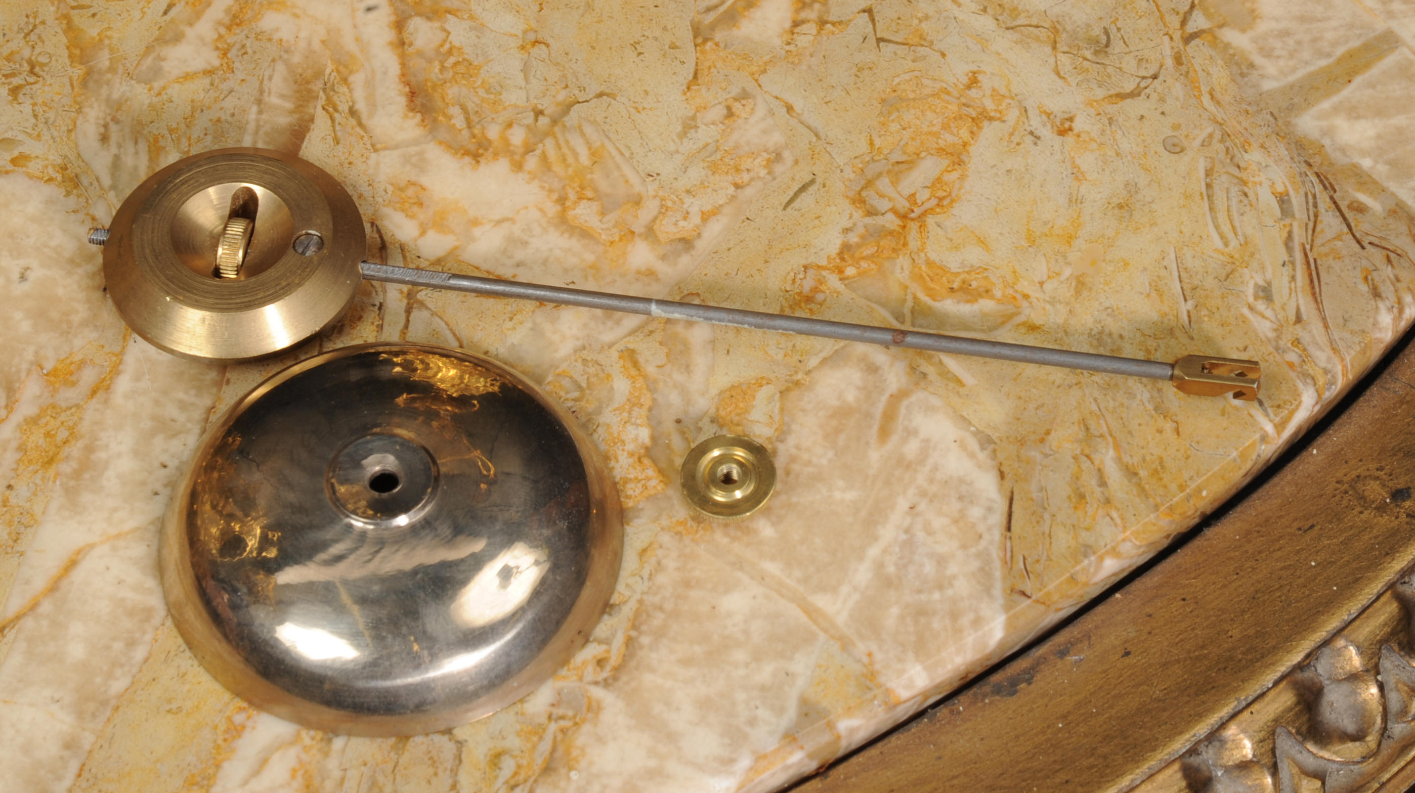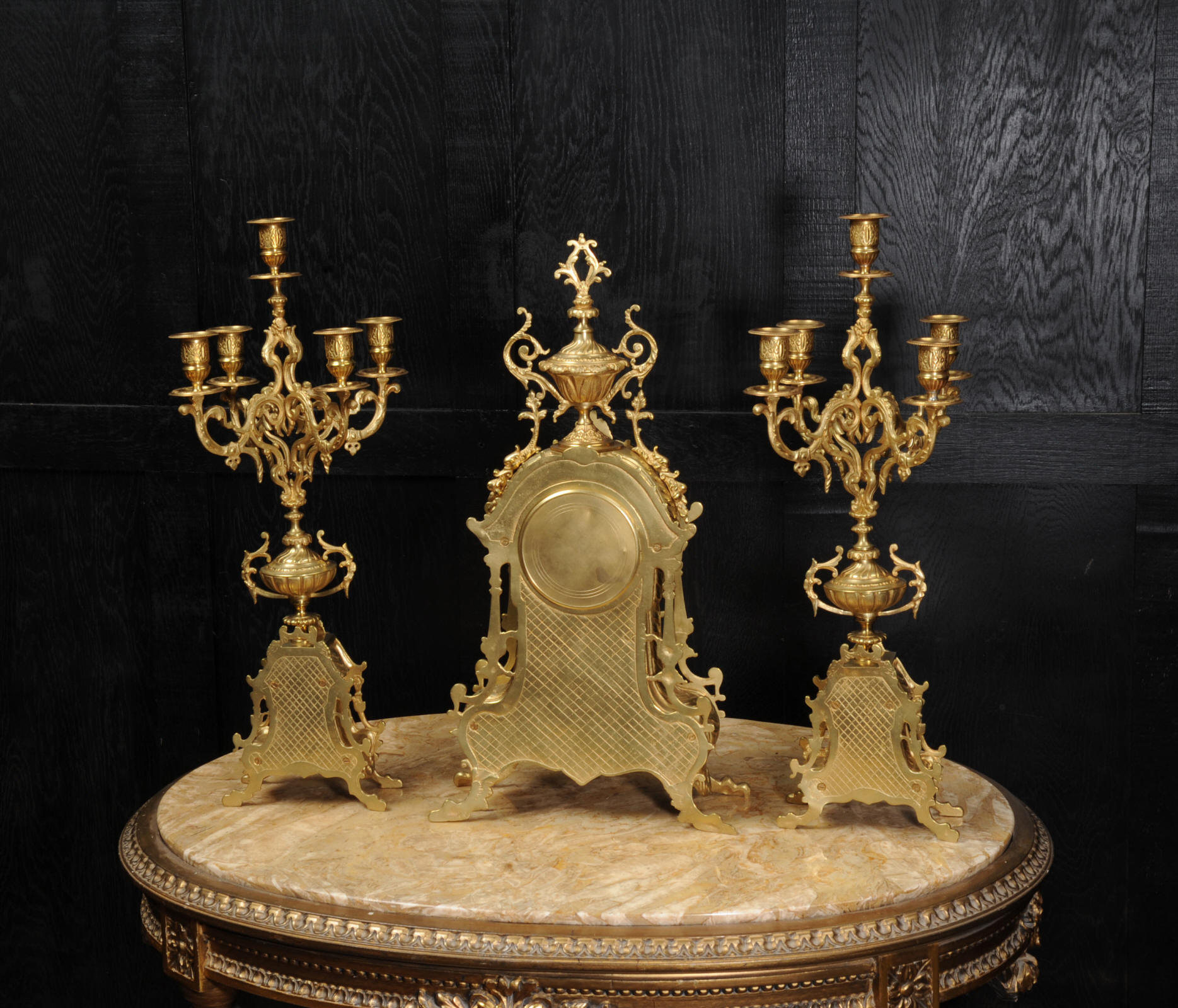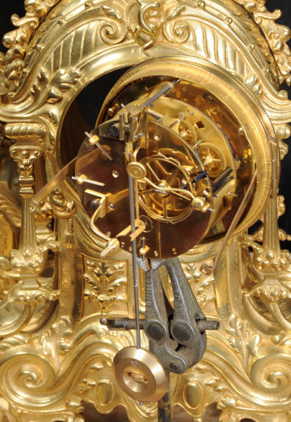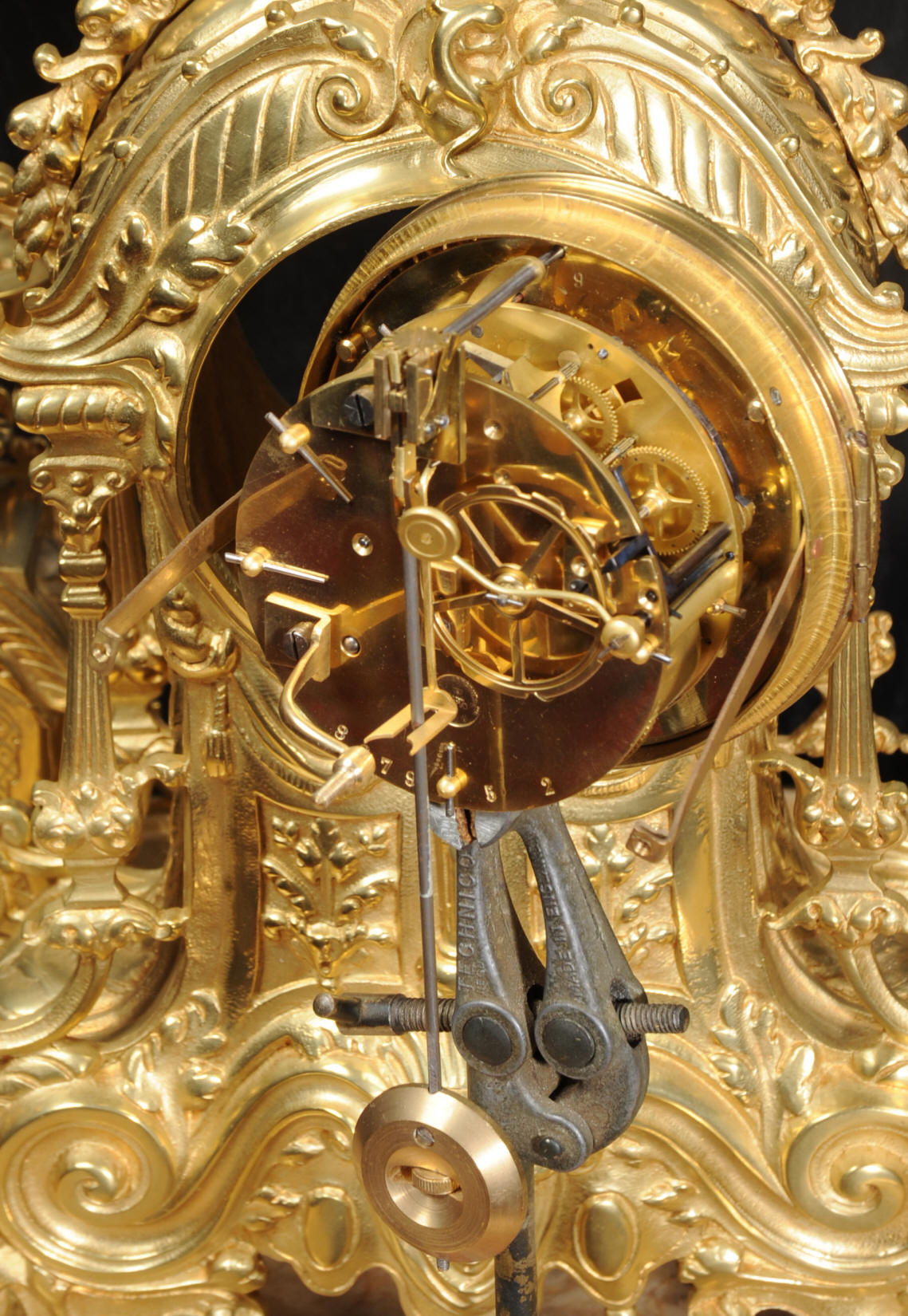The dial is porcelain enamel on copper with original blued steel hands, bronze centre and convex glass. The French movement is of high quality and is by Louis Japy. It is in excellent clean and running condition having been fully overhauled by our clockmaker. Pendulum is a replacement. It runs for 8 days and strikes the hours and halves on a bell. Click the video clip below to hear the bell and watch the clock running! Condition of the case is excellent, the original gilding is beautifully clean and bright with just some slight discolouration and tarnish. The dial is also in excellent condition just some tiny nibbles to the winding holes. Candelabra arms are slightly distorted.