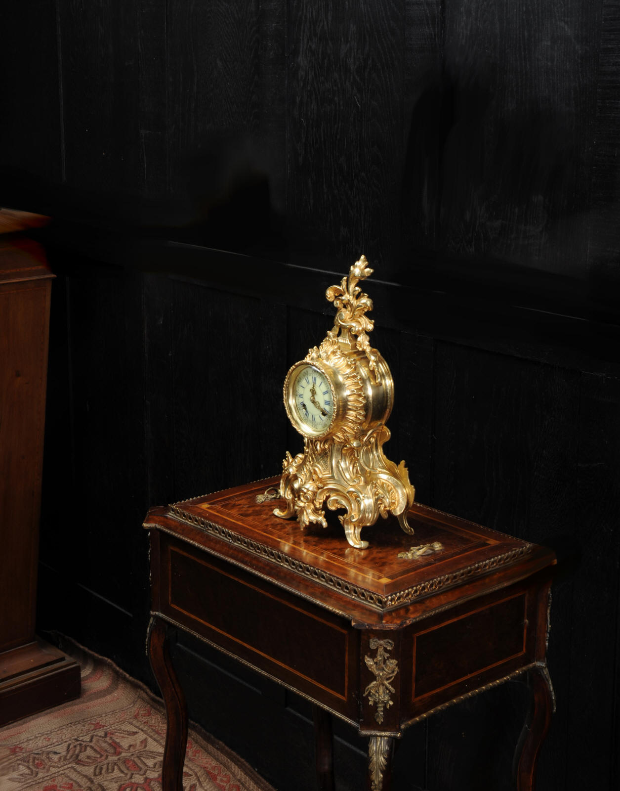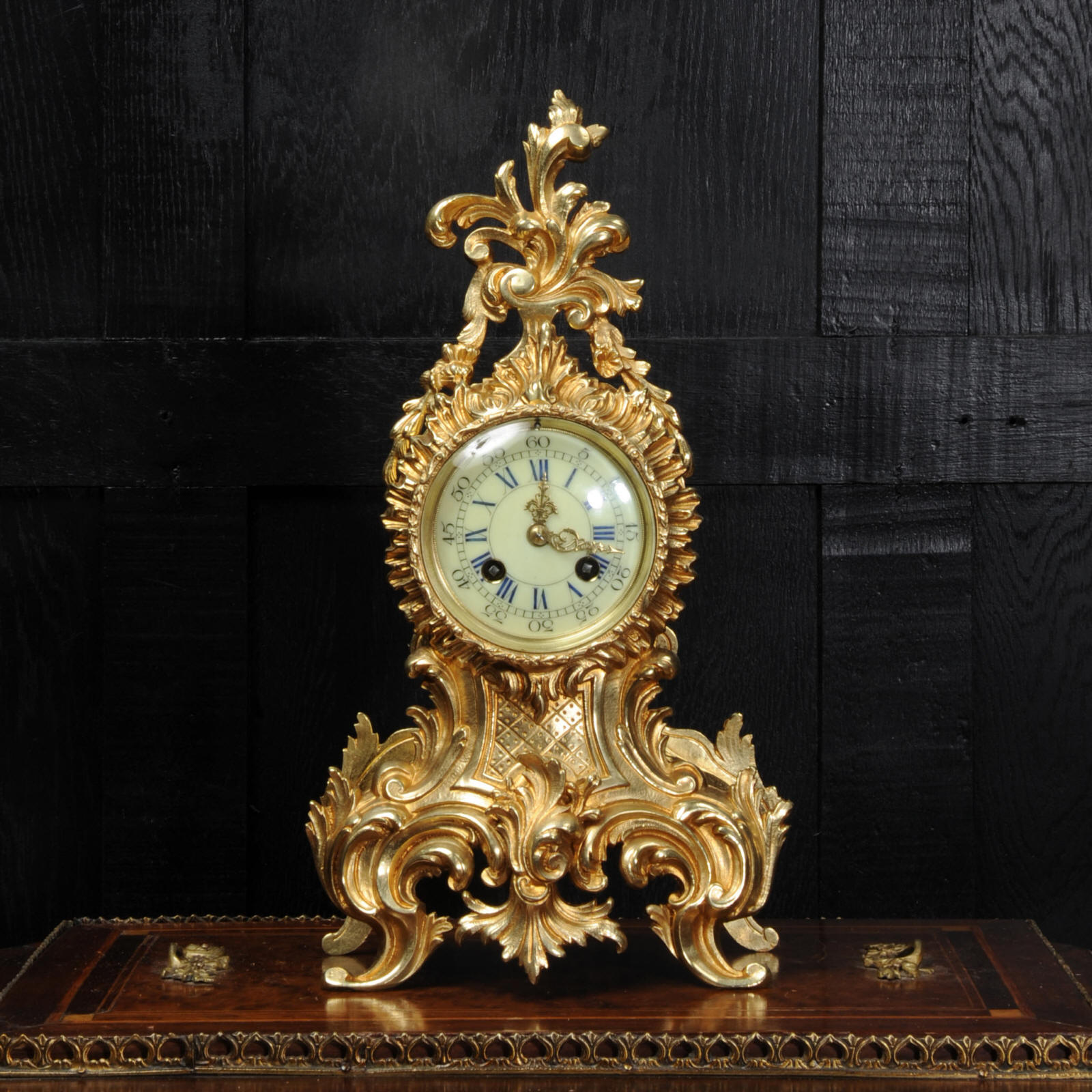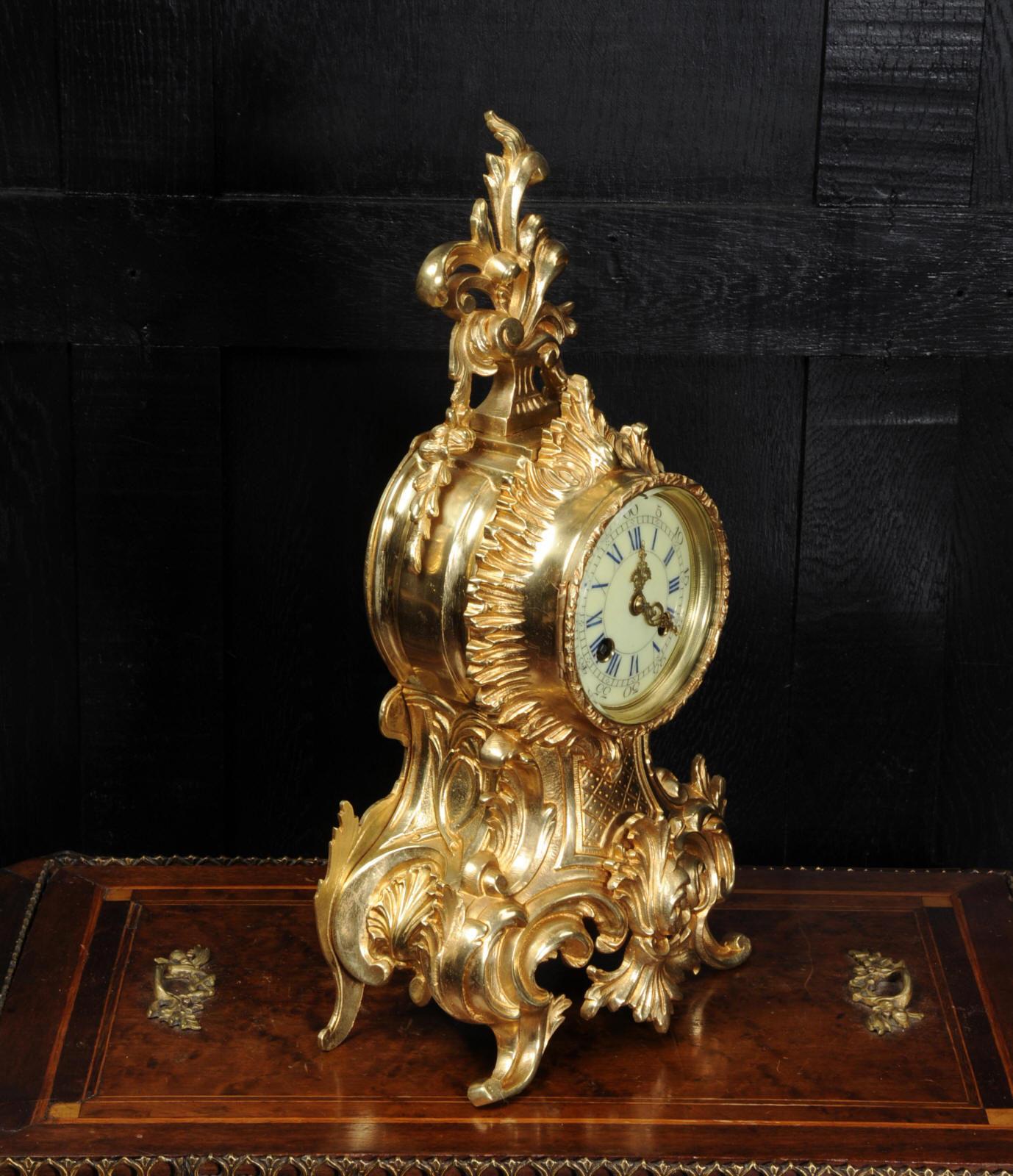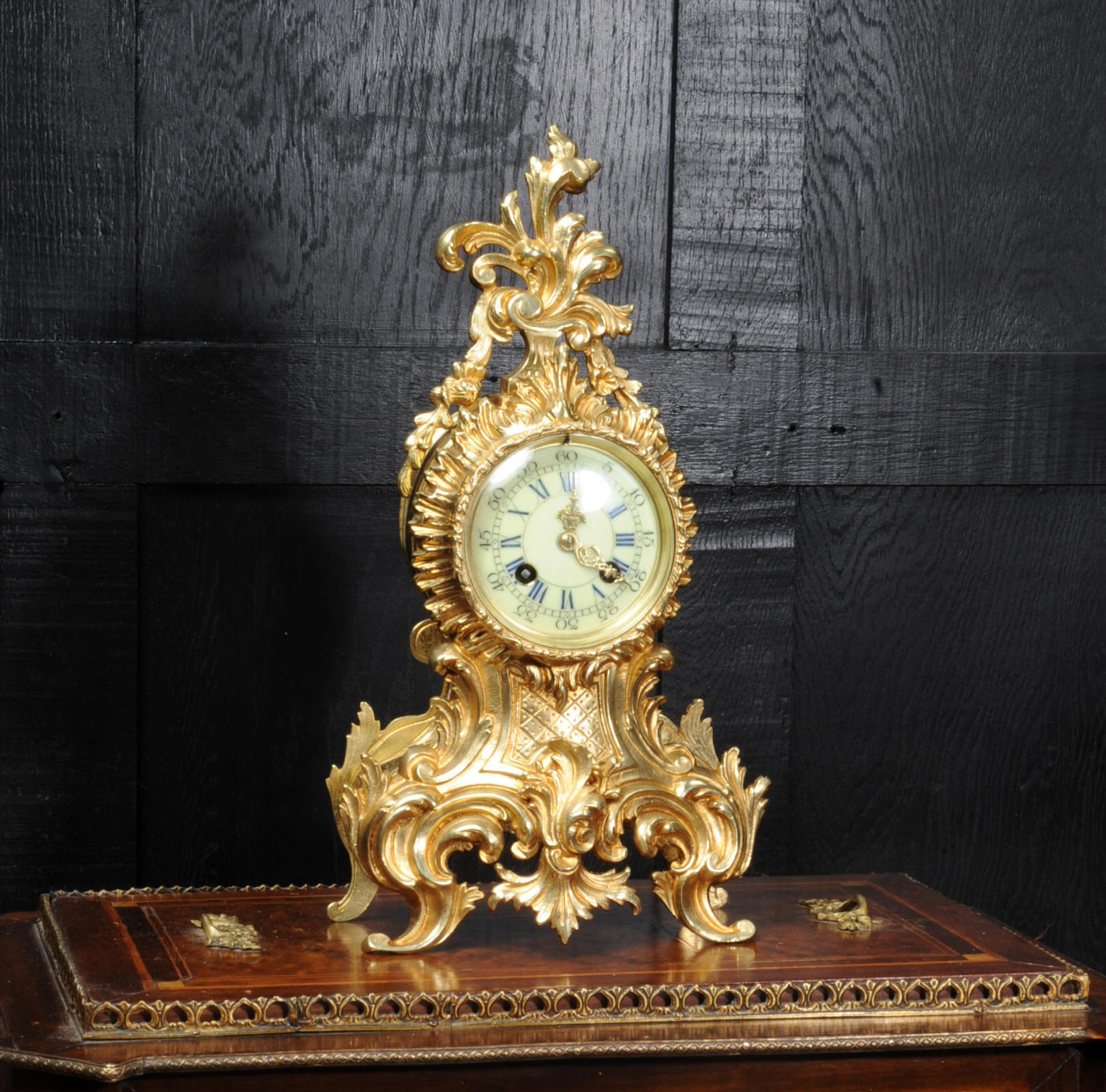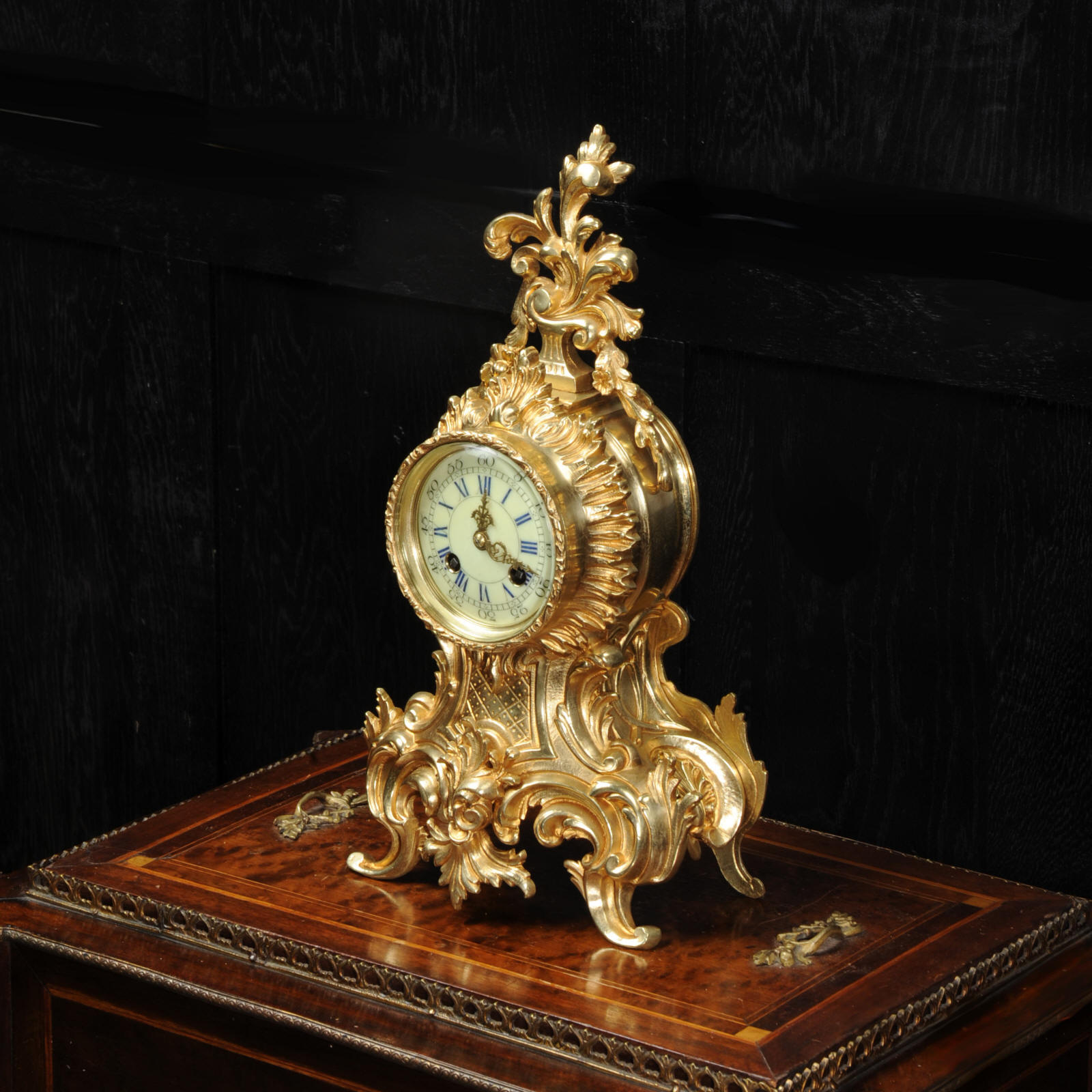 The French movement is by Vincenti et Cie and is of the maker's usual high quality. It is in excellent clean and running condition having been fully overhauled by our clockmaker. Pendulum is original. It runs for 8 days on one wind and strikes the hours and halves on a bell. Click the video clip below to hear the bell and watch the clock running. Condition of the case is excellent with clean and bright finish and there are no losses. There is some minor wear and discolouration, particularly to the rear. The dial is also in excellent condition with no damage. A beautiful Rococo clock ready for you to display.