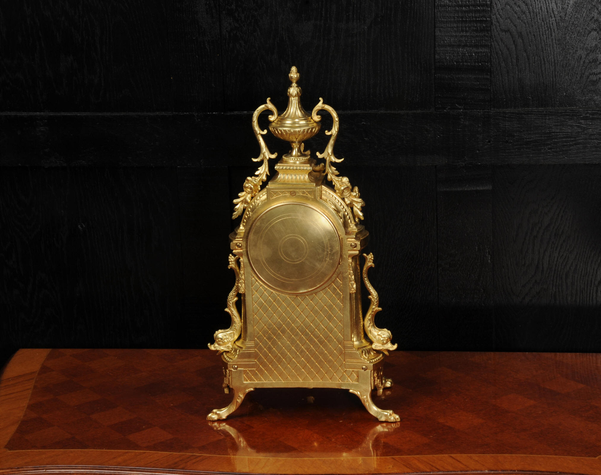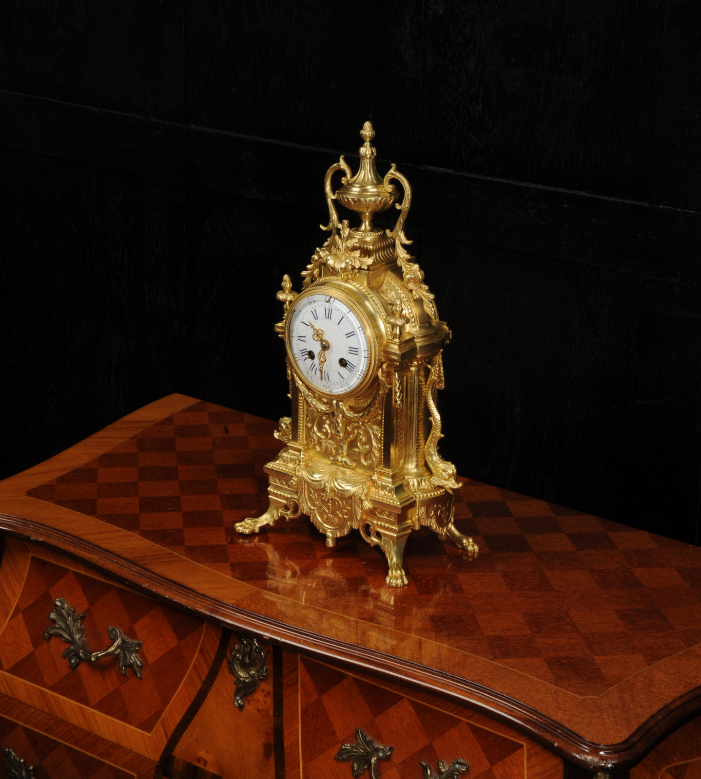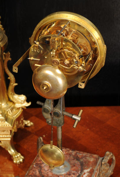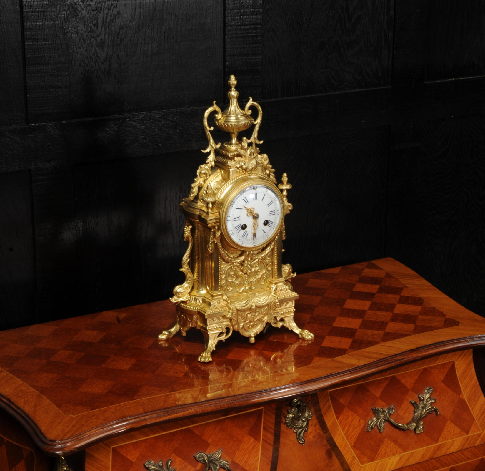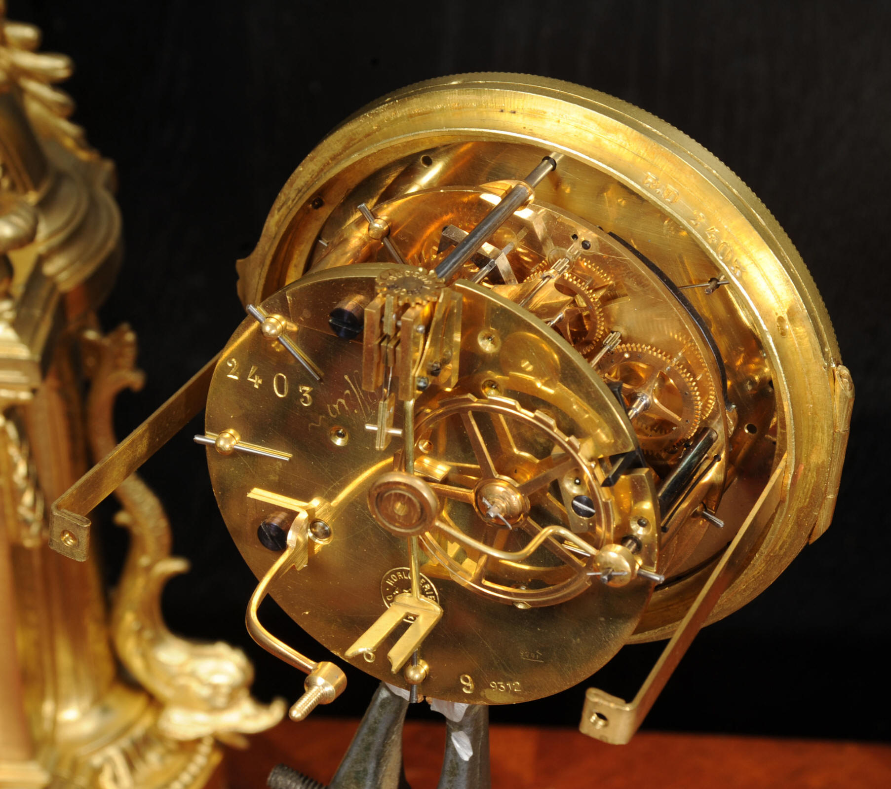 The dial is porcelain enamel on copper with beautifully fretted gilt hands and convex glass. The French movement is by Achille Brocot and is of superb quality. It is in excellent clean and running condition having been fully overhauled by our clockmaker. Pendulum is original. It runs for 8 days and strikes the hours and halves on a bell. Click the video to hear the bell and watch the clock running.