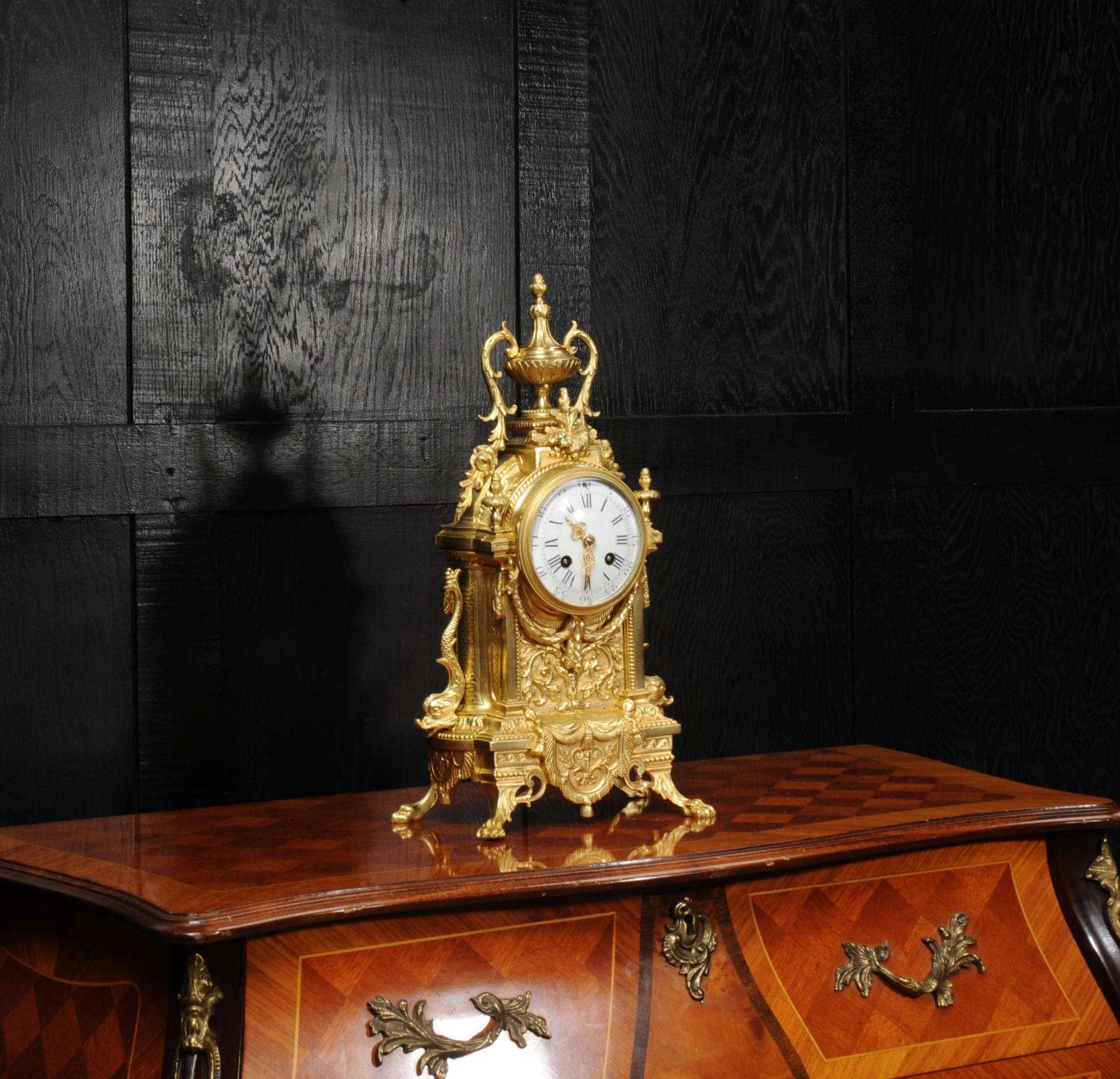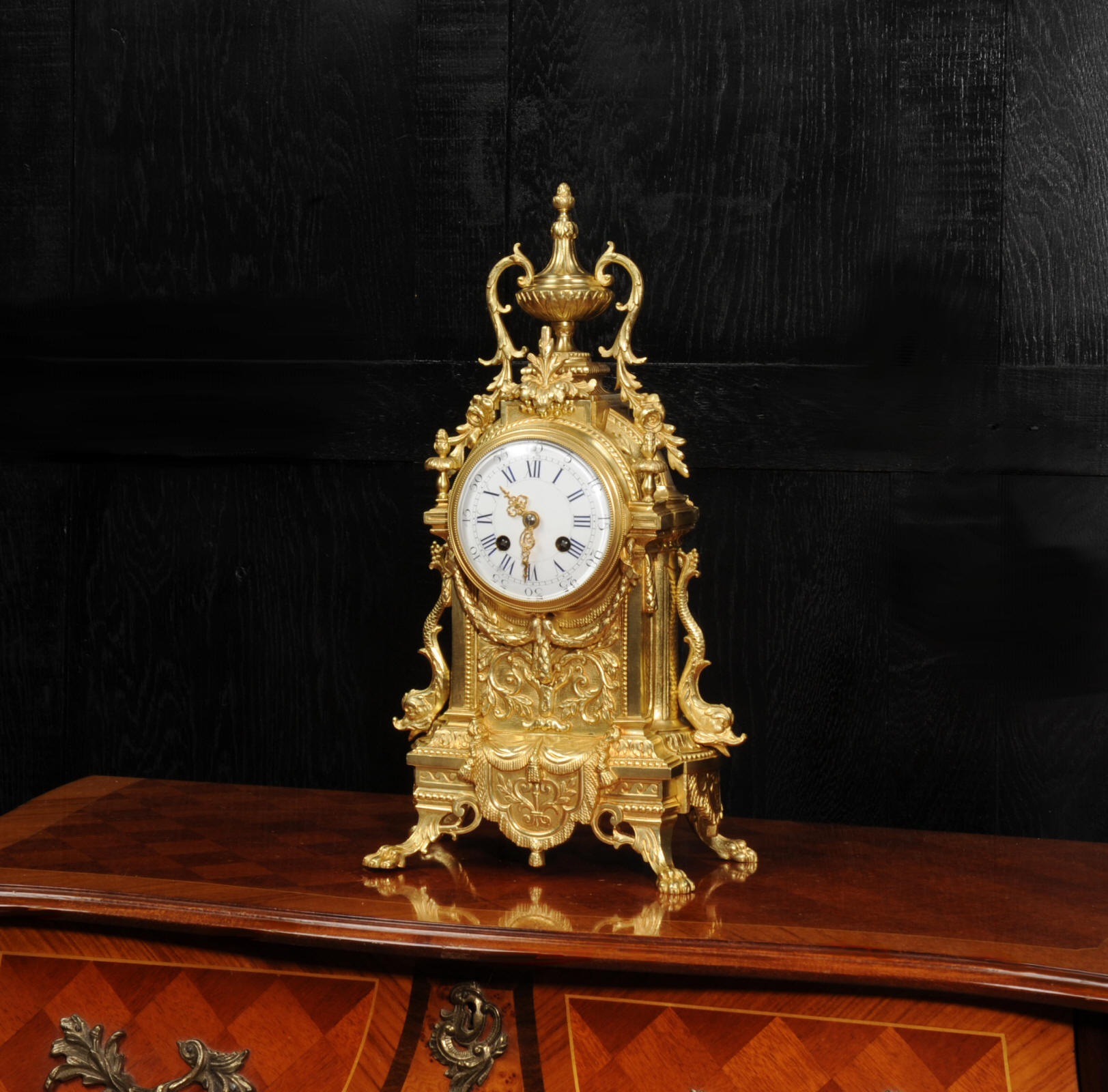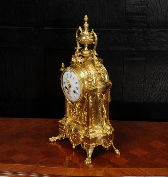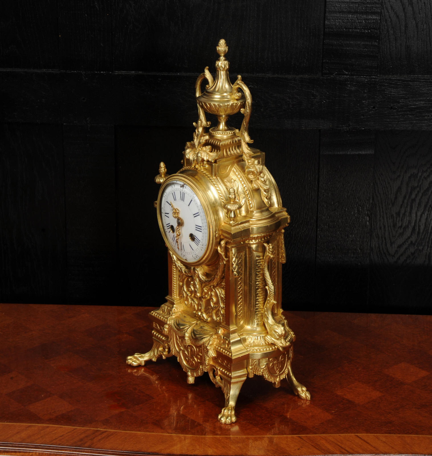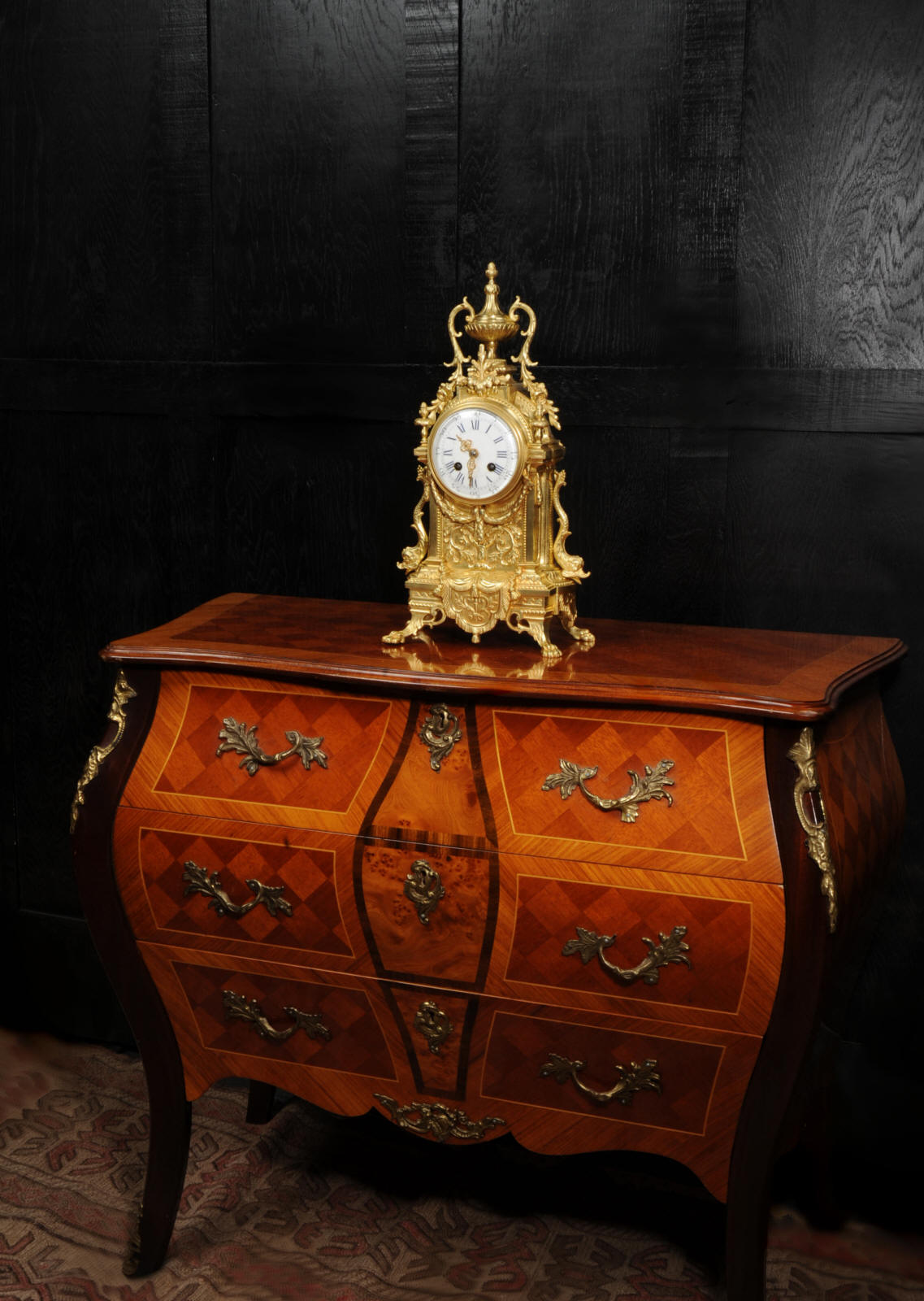 The dial is porcelain enamel on copper with beautifully fretted gilt hands and convex glass. The French movement is by Achille Brocot and is of superb quality. It is in excellent clean and running condition having been fully overhauled by our clockmaker. Pendulum is original. It runs for 8 days and strikes the hours and halves on a bell. Click the video to hear the bell and watch the clock running.