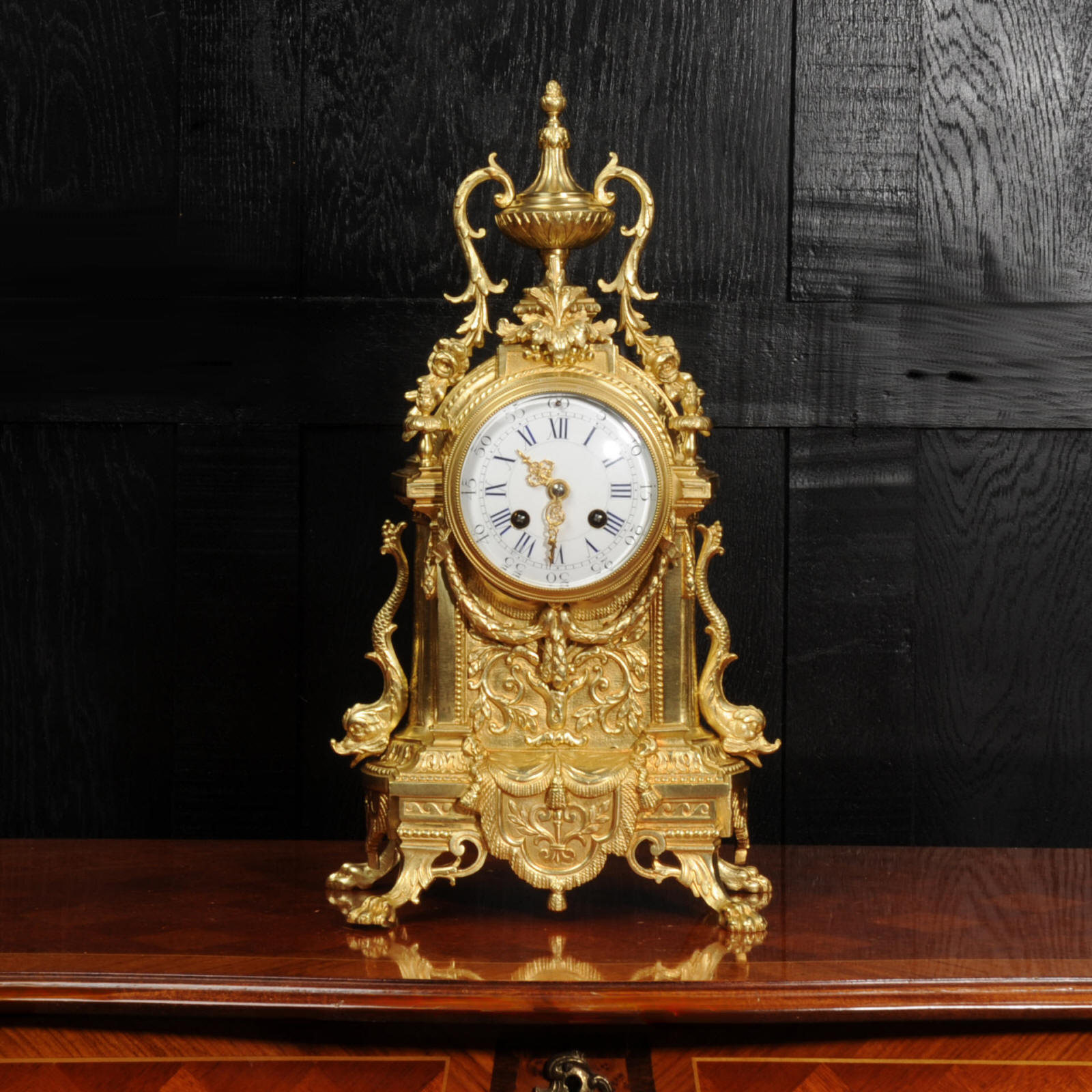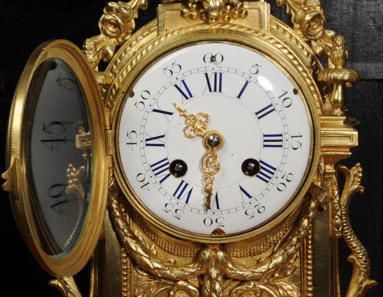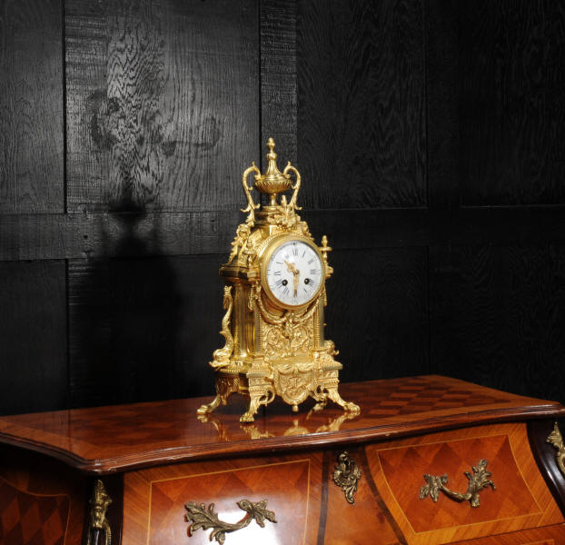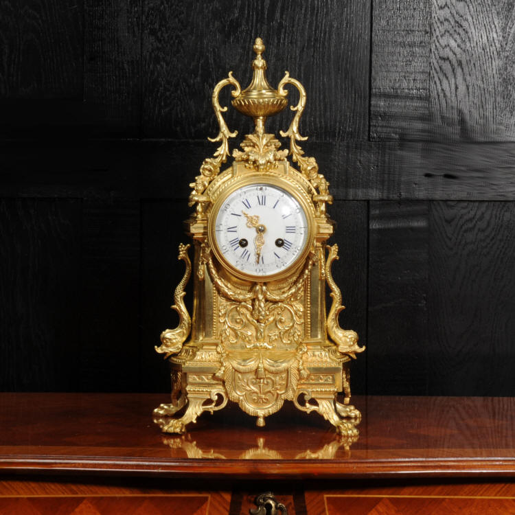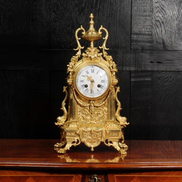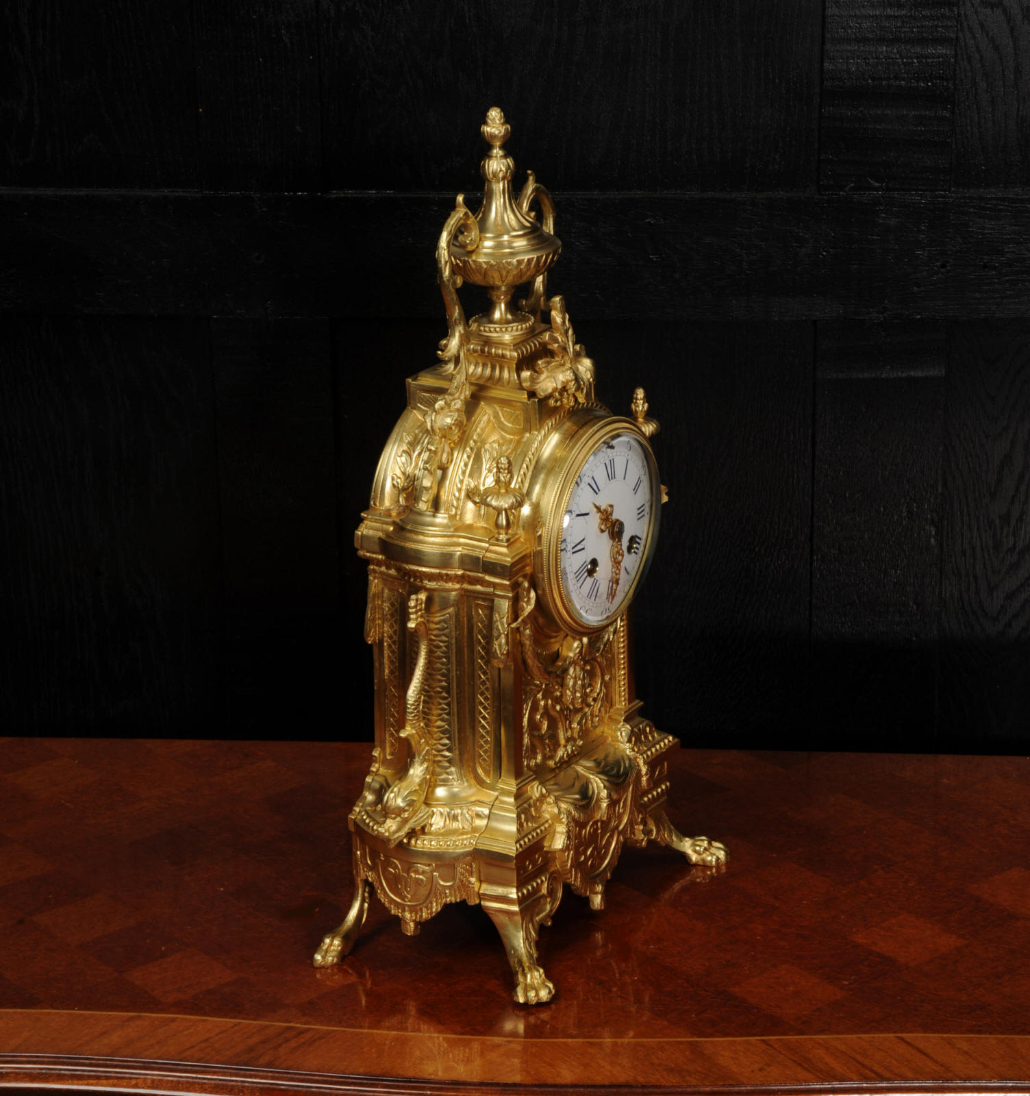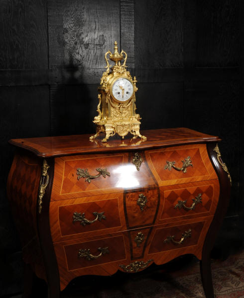 The dial is porcelain enamel on copper with beautifully fretted gilt hands and convex glass. The French movement is by Achille Brocot and is of superb quality. It is in excellent clean and running condition having been fully overhauled by our clockmaker. Pendulum is original. It runs for 8 days and strikes the hours and halves on a bell. Click the video to hear the bell and watch the clock running.