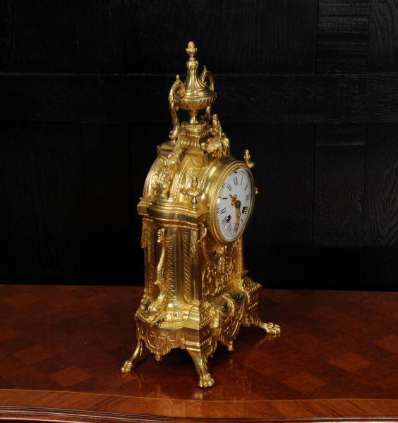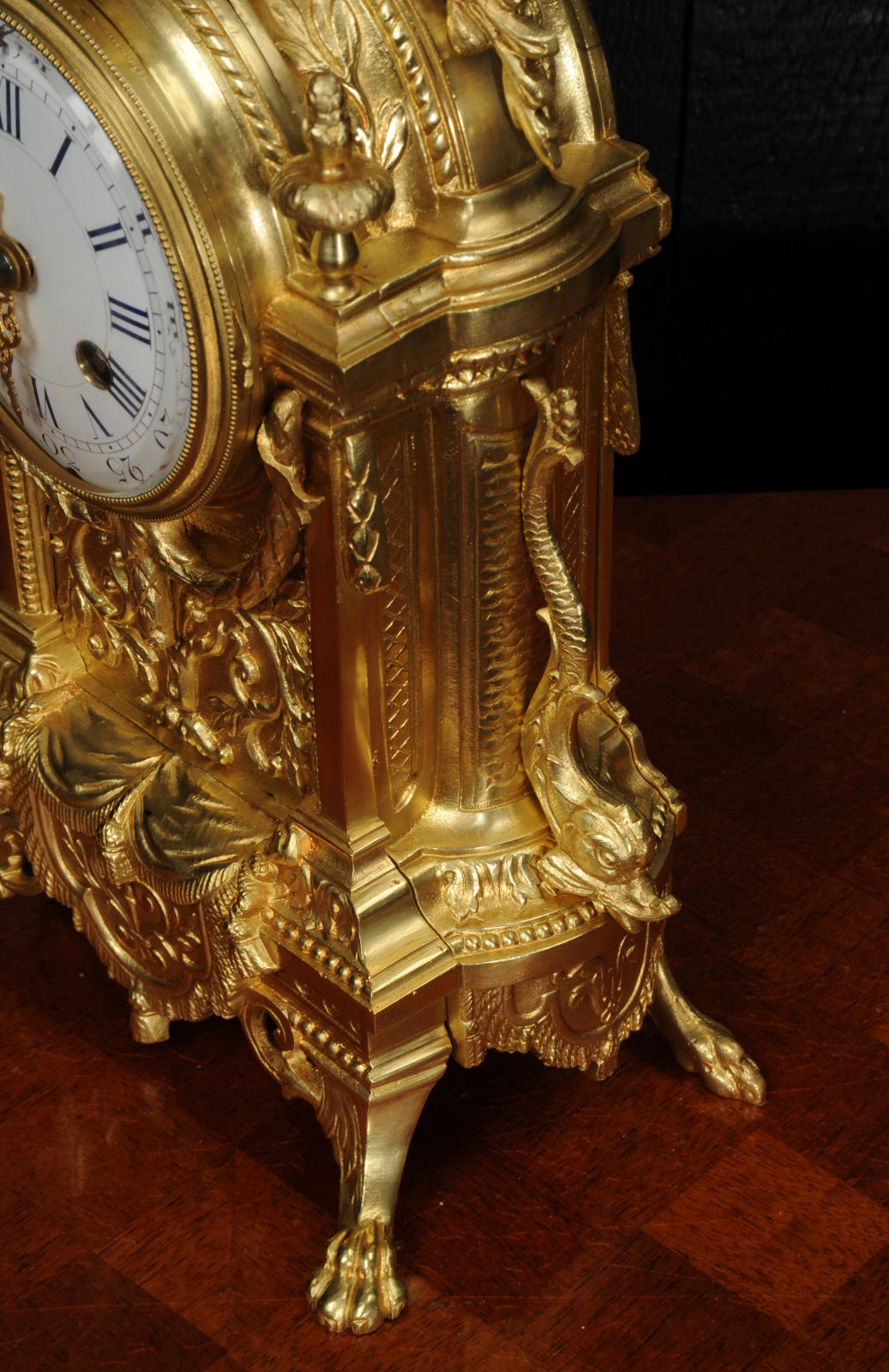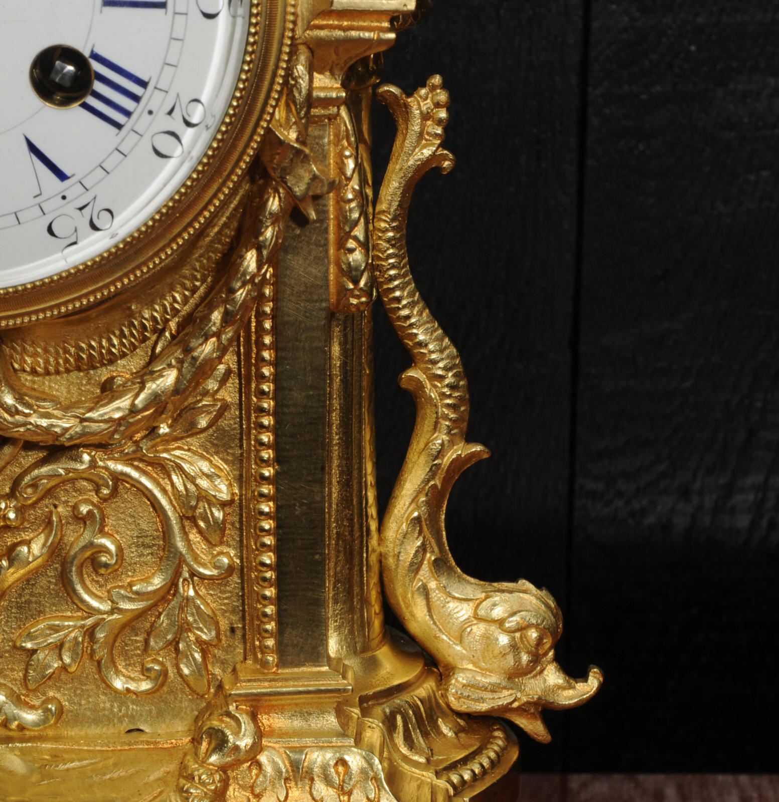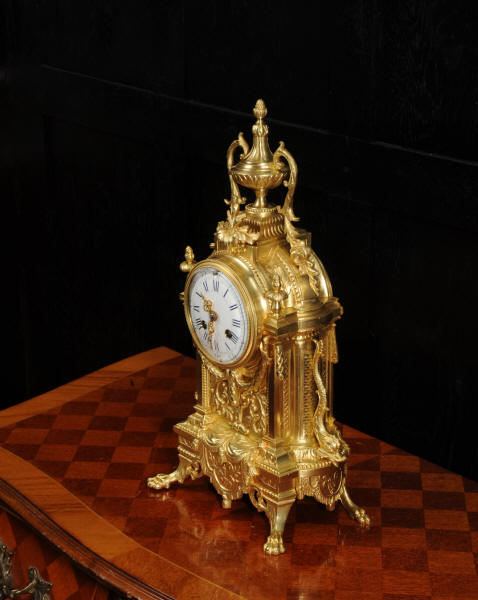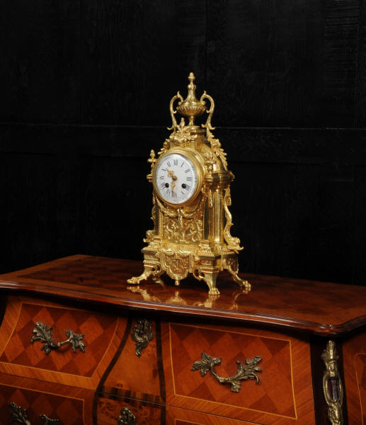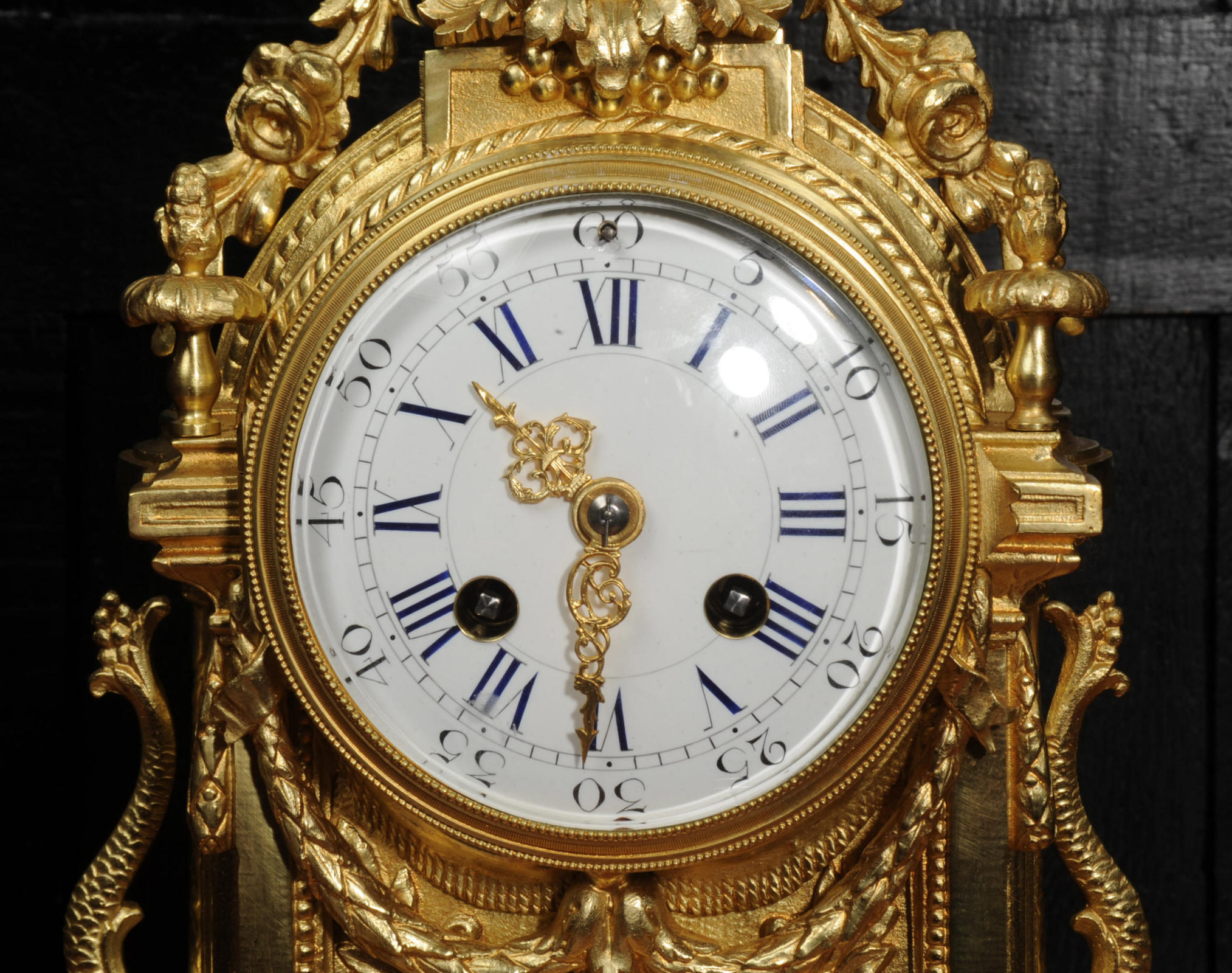 The dial is porcelain enamel on copper with beautifully fretted gilt hands and convex glass. The French movement is by Achille Brocot and is of superb quality. It is in excellent clean and running condition having been fully overhauled by our clockmaker. Pendulum is original. It runs for 8 days and strikes the hours and halves on a bell. Click the video to hear the bell and watch the clock running.